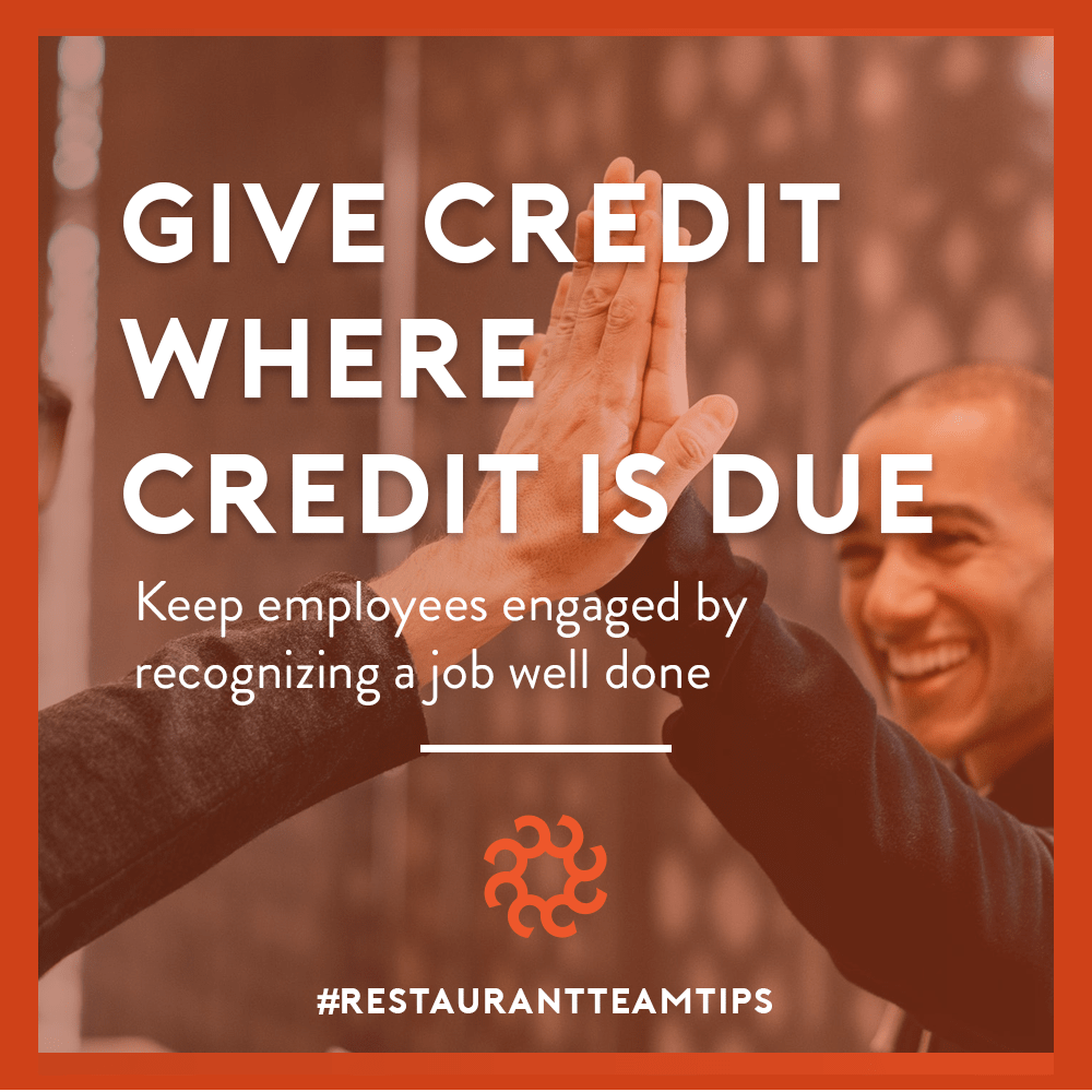 For example, if a customer approaches you about one of your servers don’t just find the server to correct their behavior– instead, give them an opportunity to tell their side of the story. By letting them speak you’re not only giving them the benefit of the doubt but you also make them feel heard. If your employee has a suggestion make them feel valued by taking the time to listen. You also never know what ideas they have in mind.